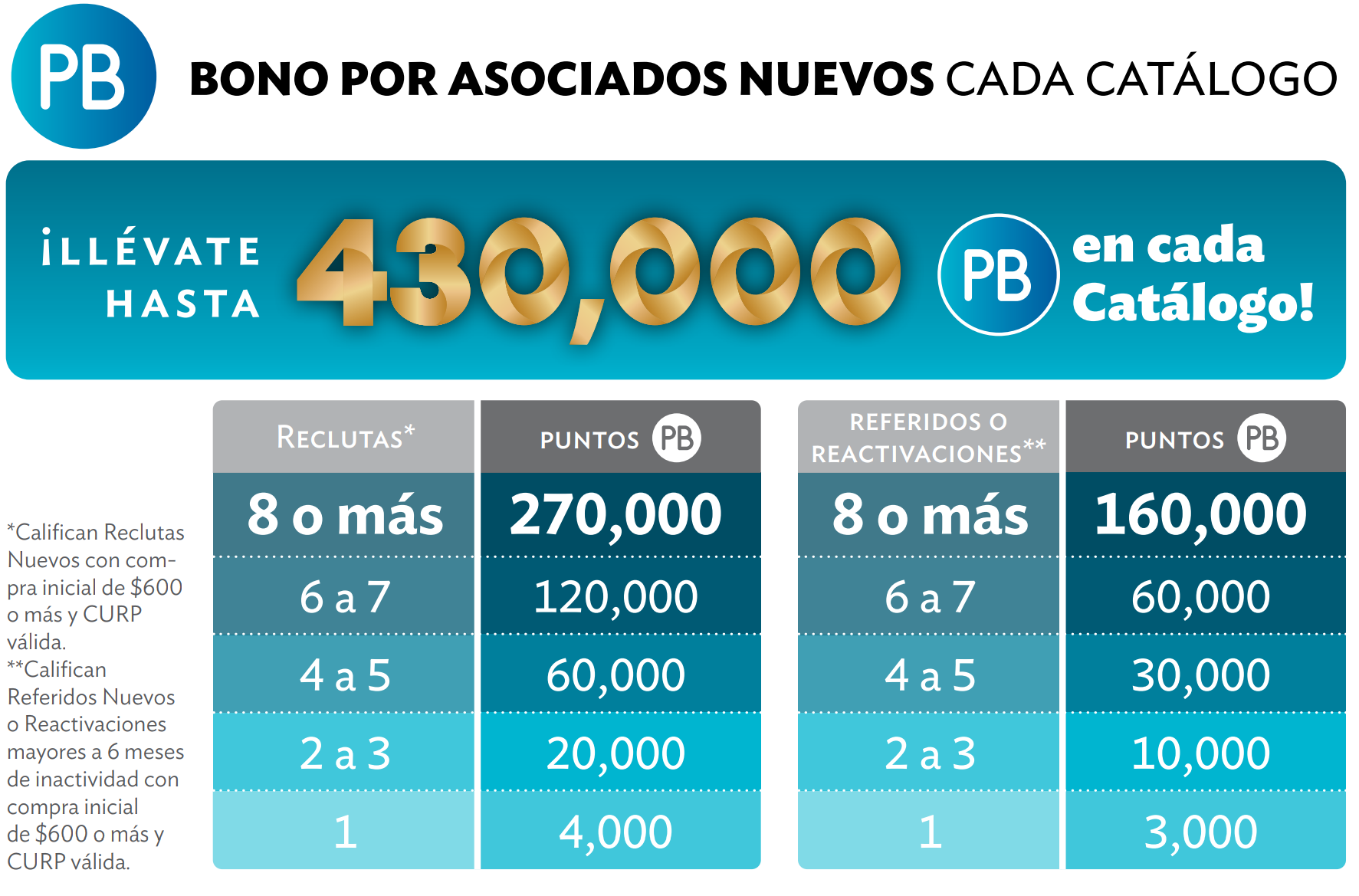 - Bono por afiliar asociados nuevos de hasta 200,000 PB
