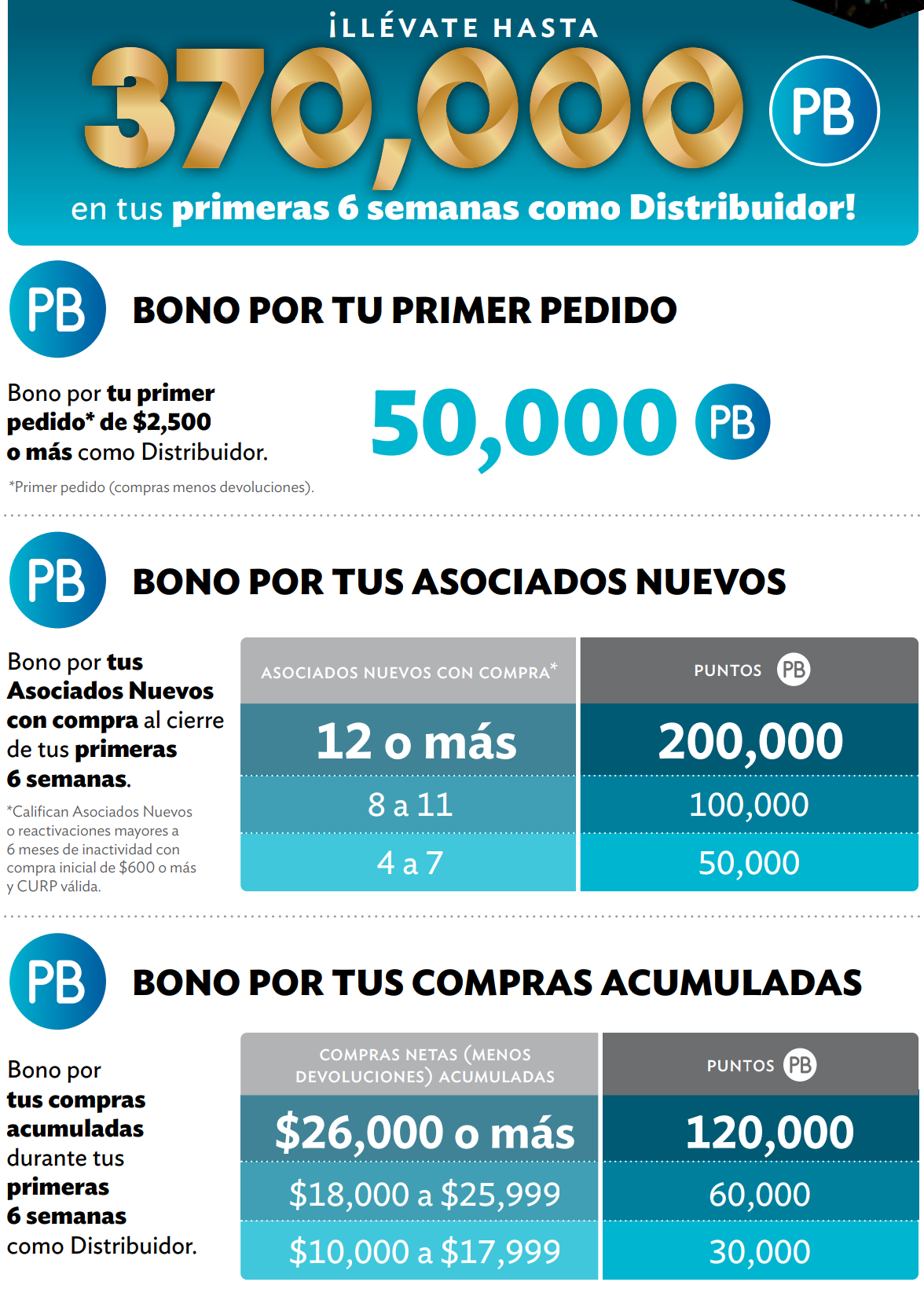 - Bono por tus compras acumuladas de hasta 120,000 PB